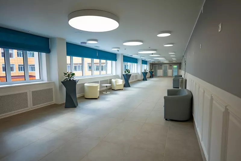 Учебные помещения полностью преобразились — заменены все инженерные коммуникации, установлены энергоэффективные системы освещения и вентиляции, обновлена внутренняя отделка. Полностью заменили мебель и оборудование в классах. Особое внимание уделено начальной школе — здесь создана особая развивающая среда с эргономичной мебелью и современными учебными комплексами.