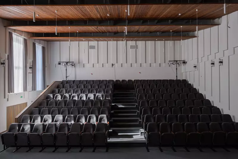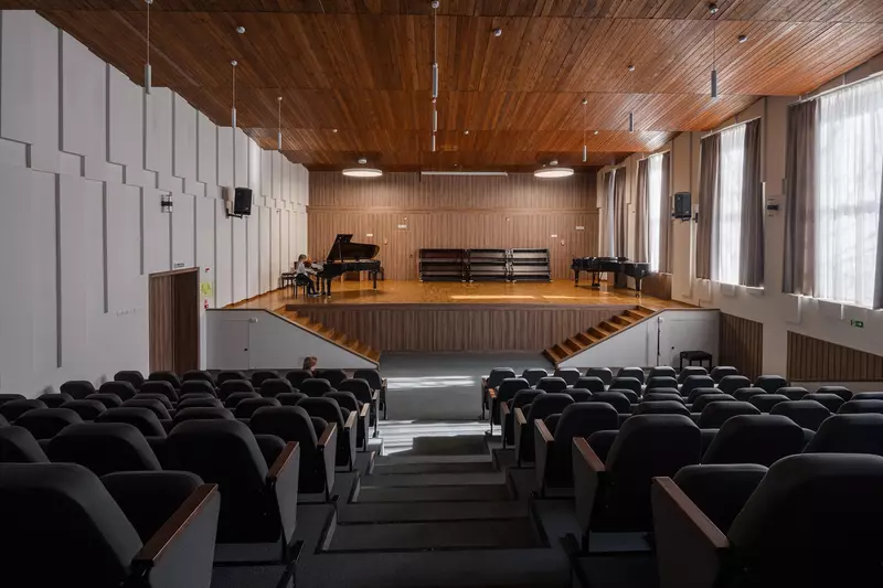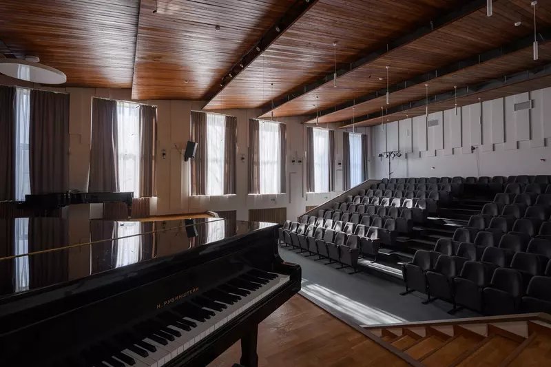 Реконструкция и обновление советского модернизма. В школе имеется концертный зал на 147 мест, хореографический зал, библиотека.Существует 10 творческих коллективов: ансамбль народных инструментов, младший ансамбль скрипачей, старший ансамбль скрипачей, ансамбль виолончелистов, старший хор, младший хор, вокальный ансамбль «Сатья», ансамбль баянистов, хореографическая группа, а также камерный ансамбль.