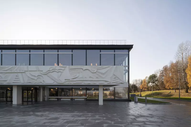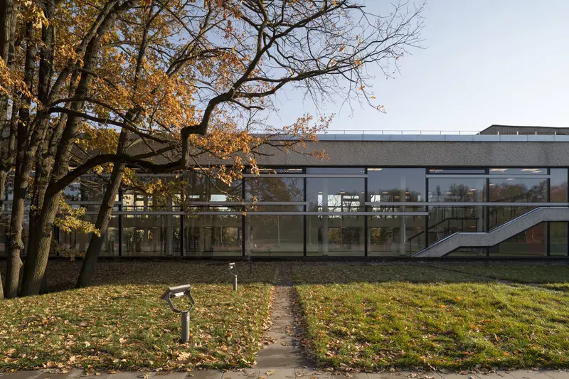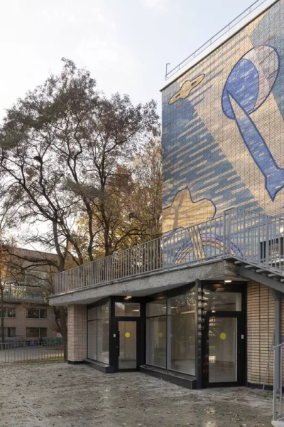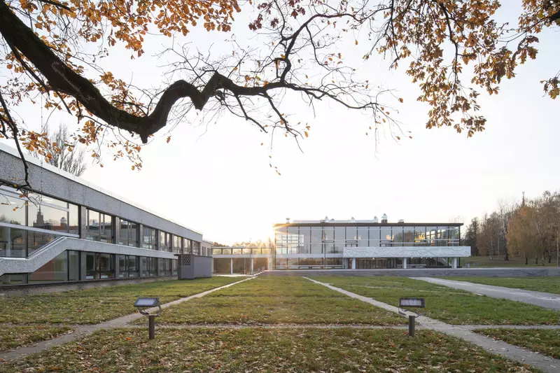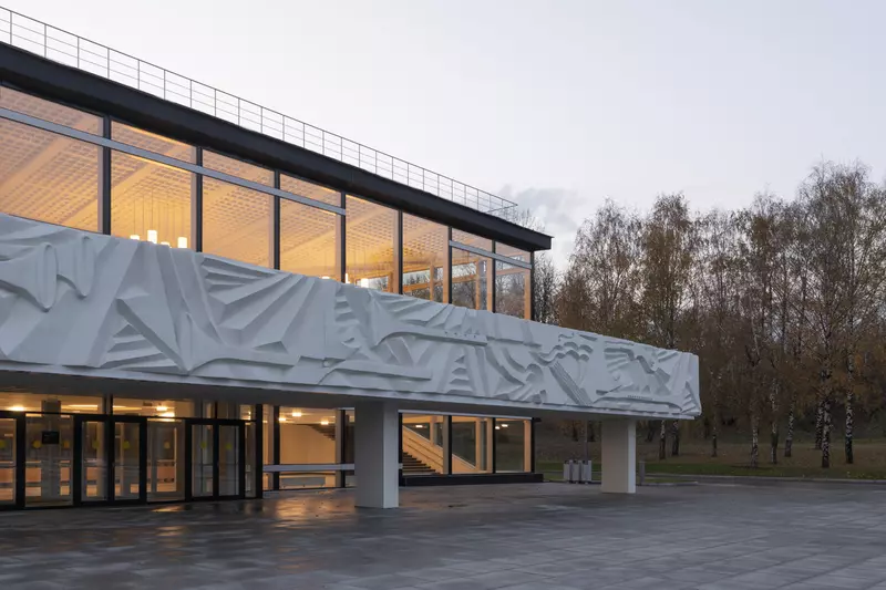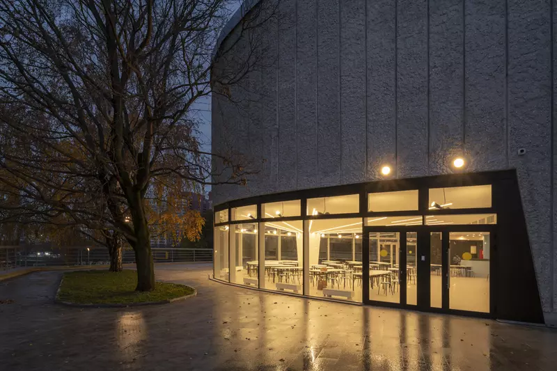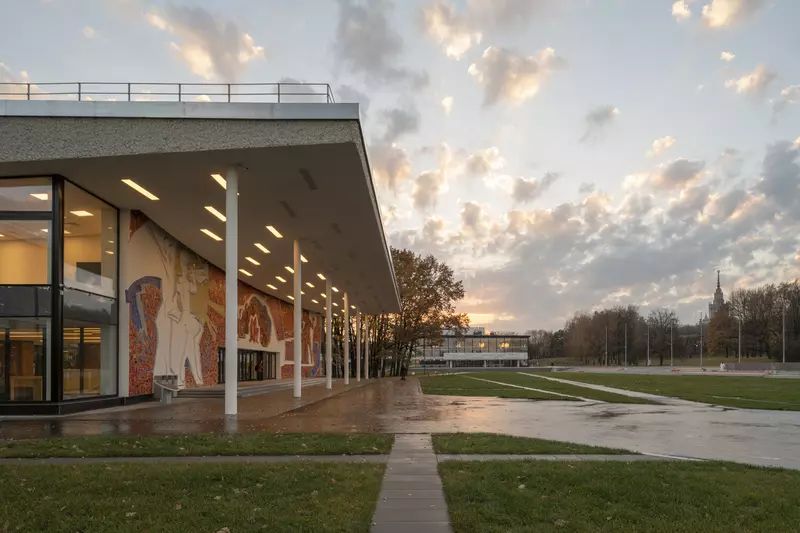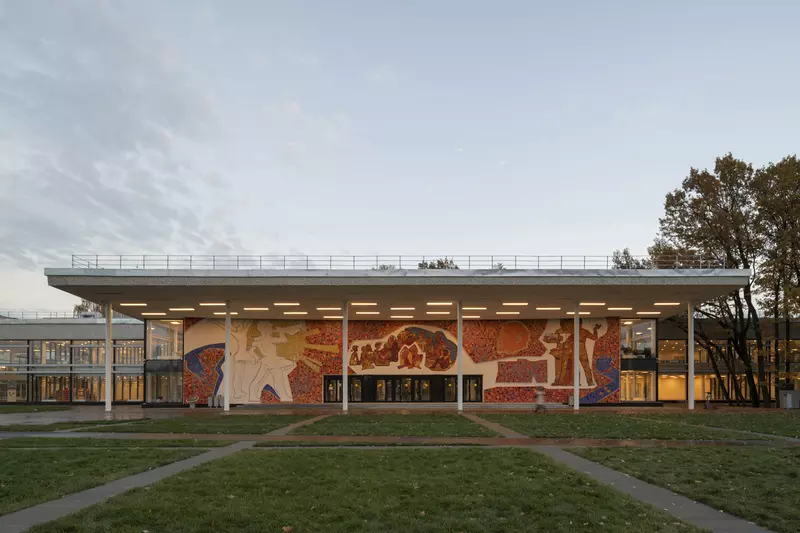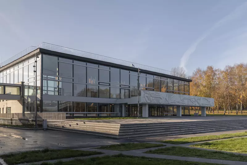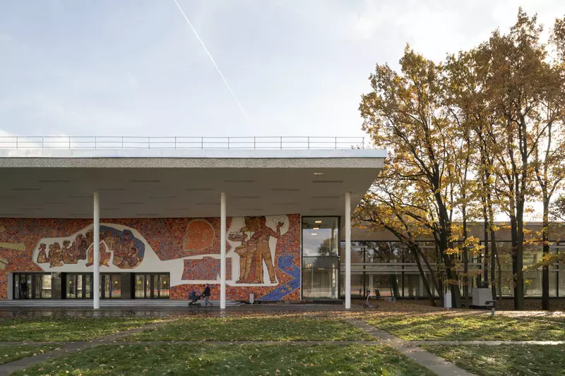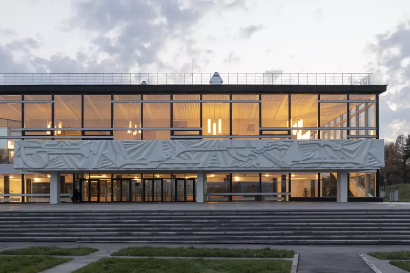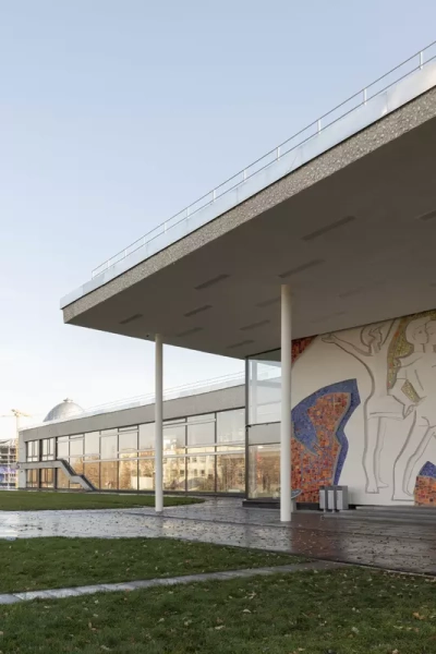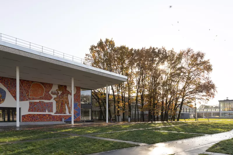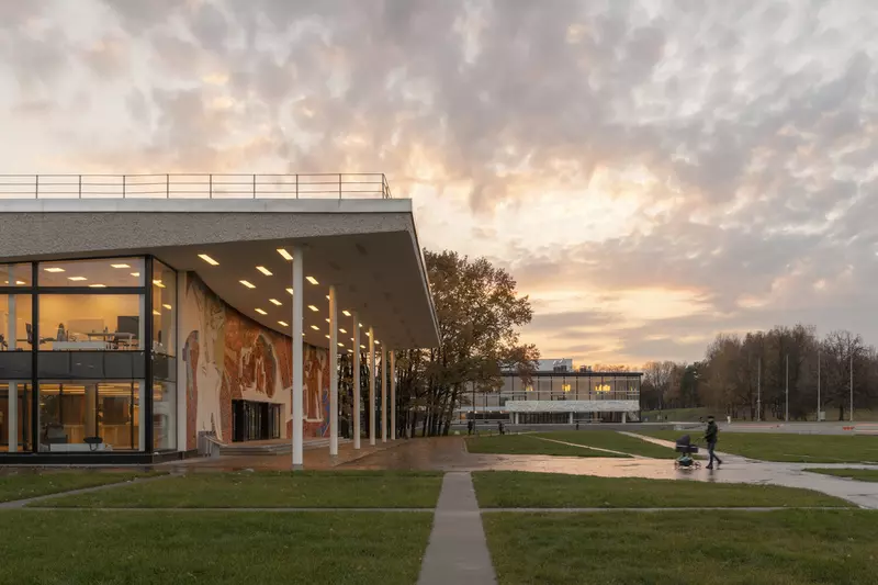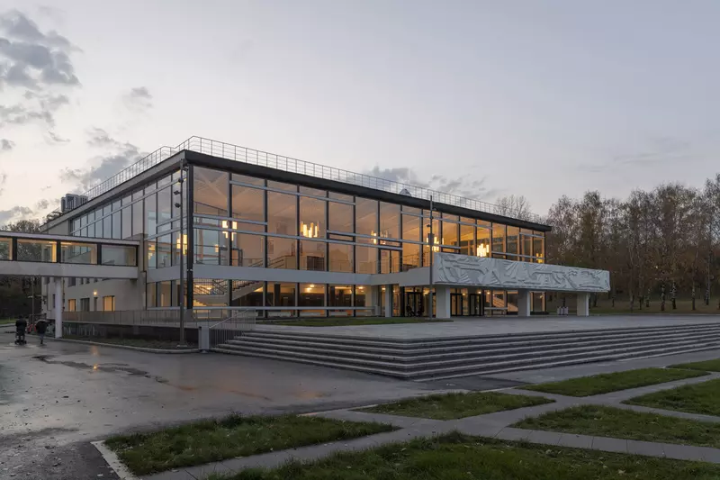 Это удивительная история возрождения памятника советского модернизма — очень личная и одновременно уникальная в масштабах всей страны. Для бюро Kleinewelt Architeckten этот проект, по их словам, был немного таким архитектурным иезуитством: когда ты сознательно ограничиваешь себя от каких-либо собственных высказываний, а только пытаешься расчистить здание от грубых наслоений, чтобы раскрыть изначальный авторский замысел.
