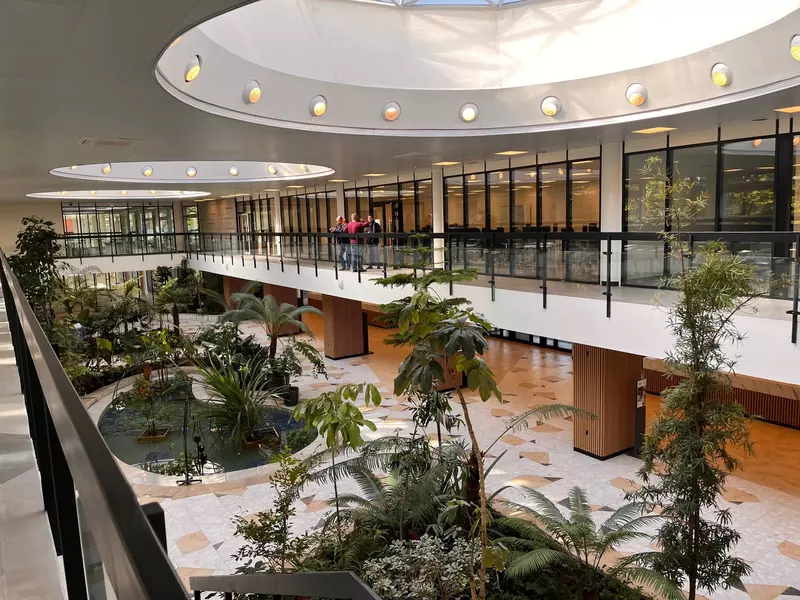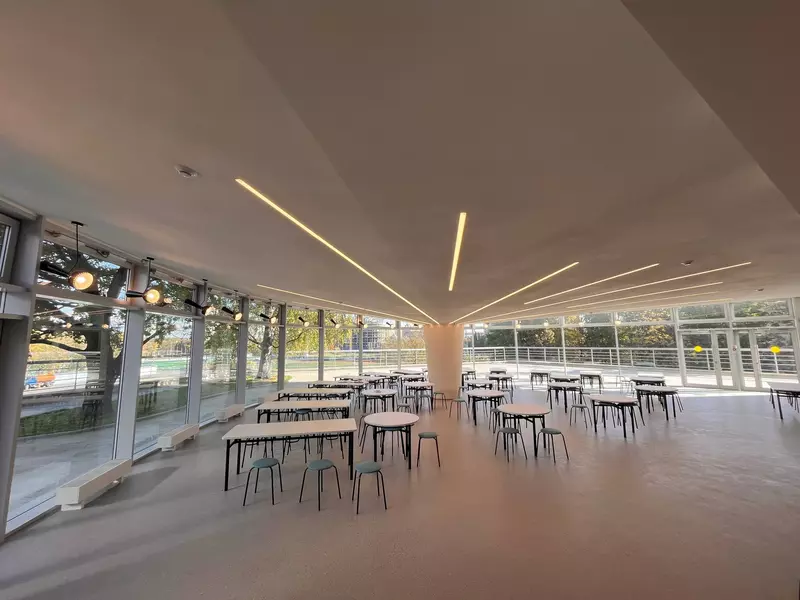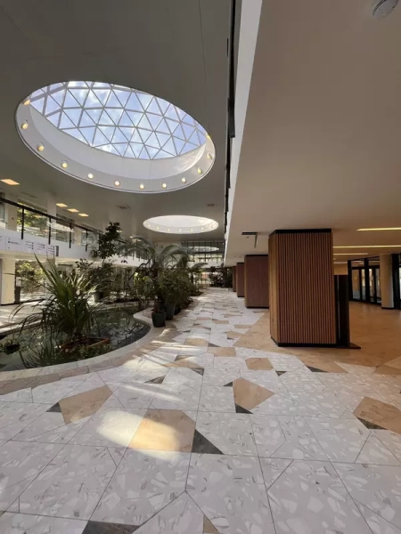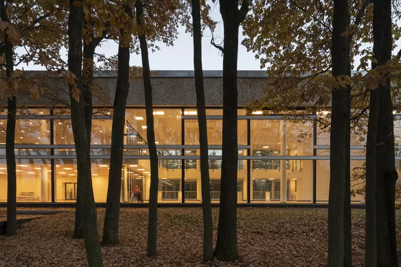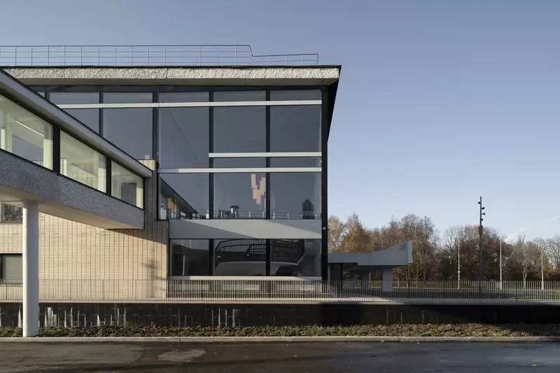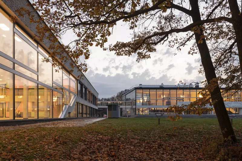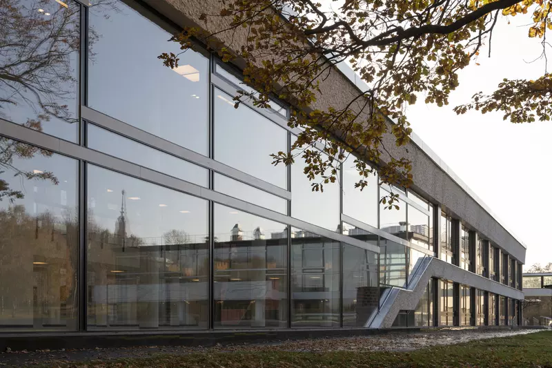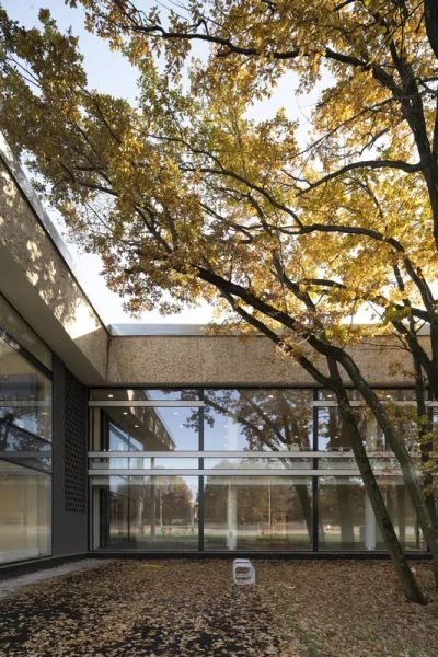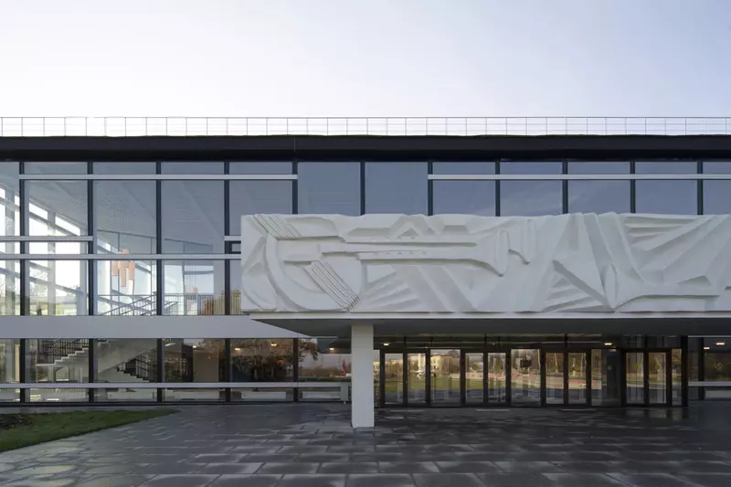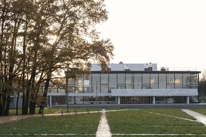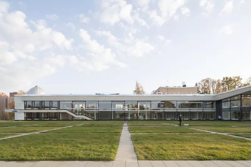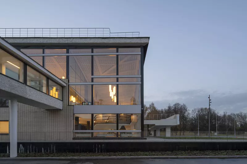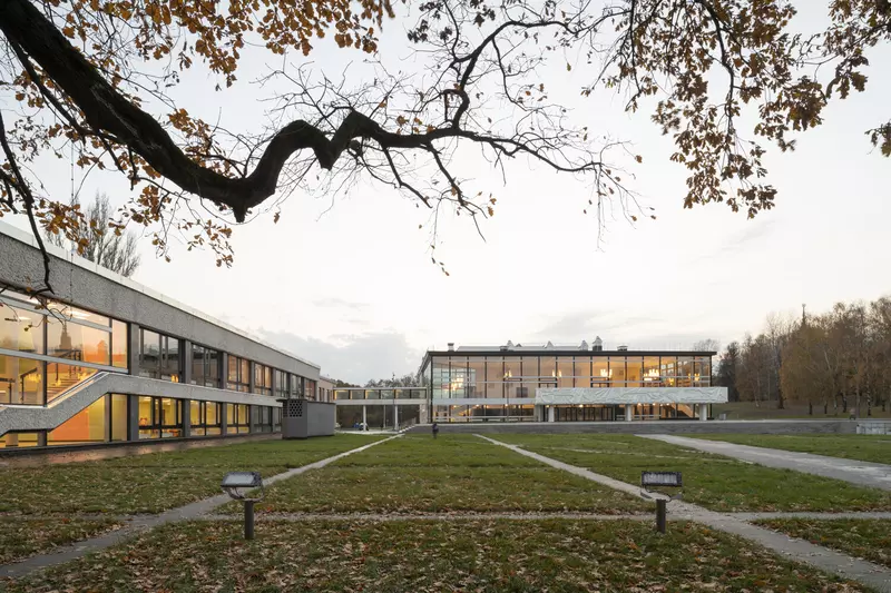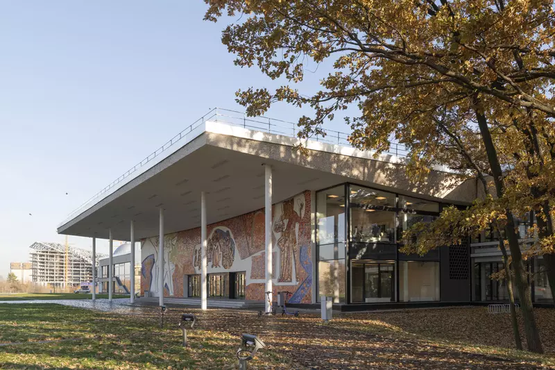 Это удивительная история возрождения памятника советского модернизма — очень личная и одновременно уникальная в масштабах всей страны. Для бюро Kleinewelt Architeckten этот проект, по их словам, был немного таким архитектурным иезуитством: когда ты сознательно ограничиваешь себя от каких-либо собственных высказываний, а только пытаешься расчистить здание от грубых наслоений, чтобы раскрыть изначальный авторский замысел.